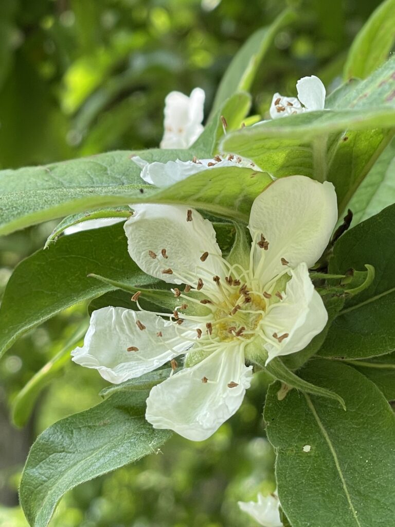 In het voorjaar bloeit de kweepeer met prachtige witte of roze bloemen waar veel hommels en bijen op af komen. De bloemen zijn groter dan die van de gewone peer waarmee ze verwant zijn. Net als de appel en de peer hoort de Cydonia bij de rozenfamilie. De kweepeer is een langzame groeier, meestal wordt hij aangeboden als struik die op den duur uitgroeit tot een meerstammige boom. Af en toe is hij verkrijgbaar als hoogstam, dan is het dus al een ‘echte’ boom. Lang geleden stond bij iedere boerderij een kweeperenboom. In onze tuin staat een hoogstam, tijdens de open tuindagen in september kan je deze komen bekijken, dan serveren we ook altijd kweeperentaart.